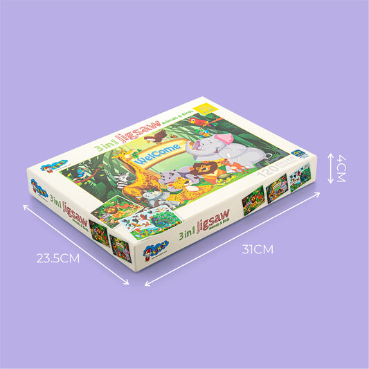 3 in 1 Jigsaw Puzzle Animals and Birds