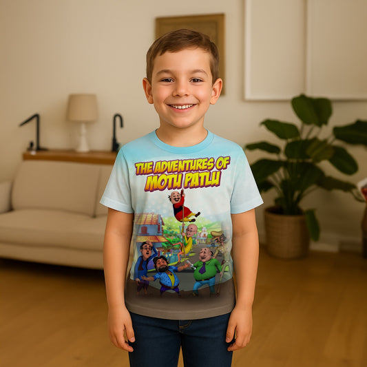 Motu Patlu Kids AOP Sports T-Shirt